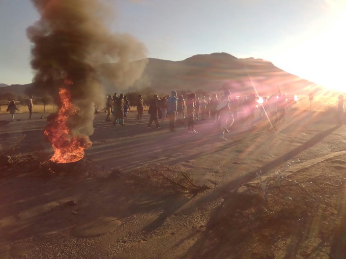 AN image of the protest in Ezibeleni this morning as sent in by a Komani resident. Tyres were set alight and the intersection near the township blocked.