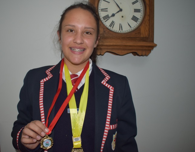 WHAT A STAR PERFORMANCE: Anje Strydom in Grade 8 at Girls’ High School attended the BCMJA Judo Trials in East London recently. She received a Gold medal at this event.