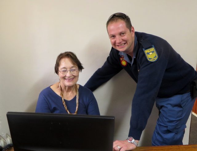TOUGH CHOICES: Judges in The Rep’s photographic competition, from left, artist Magdel Jerrard and policeman and photographer Dawie Kernekamp, consider the entries for the final week of the competition, which is co-sponsored by Orms, Magers Pharmacy and Queen Motor Spares   Picture: CHUR FOURIE