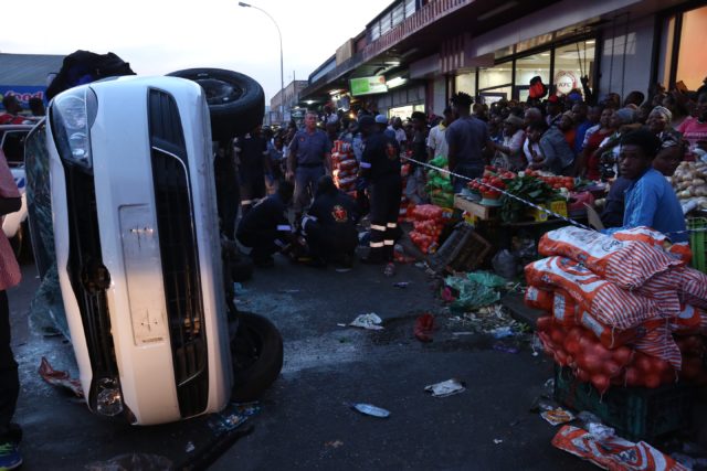 Officers were too late to save another man‚ who lay dead one block away. His bloodied body lay on a heap of potatoes‚ spilled from a nearby street stall during the chaos of the attack.