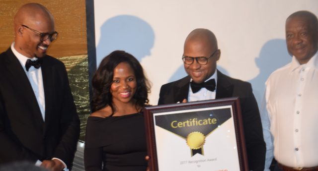 From left, Xolisa Bangazi, Azola with her husband Mncendisi Mayekiso and chairman of Kwini Mining Investments Dr. Mlungisi Kwini