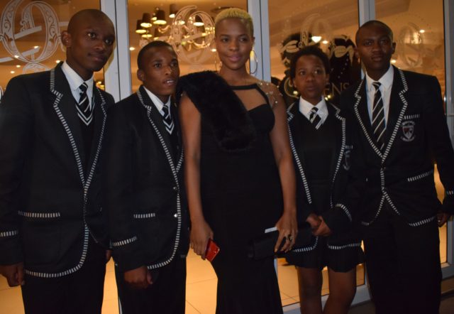 Radio personality Nonala Tose with KwaKomani Comprehensive School pupils