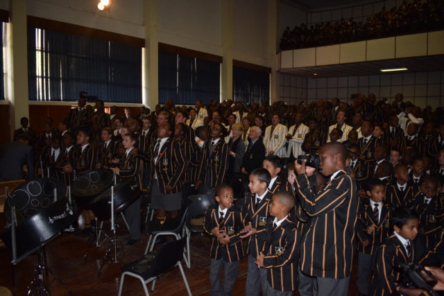 Gallery: We are ready: Queen’s College Boy’s High School pupils after their combined assembly for the 160th reunion for the class of 2008 with Queen’s College Primary School on Friday.