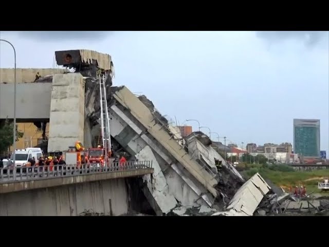 A motorway bridge collapsed on August 14 2018 over the northern Italian port city of Genoa, killing dozens of people, according to the local ambulance service. Many people are feared dead as cars were sent down over a river, railway tracks and buildings.