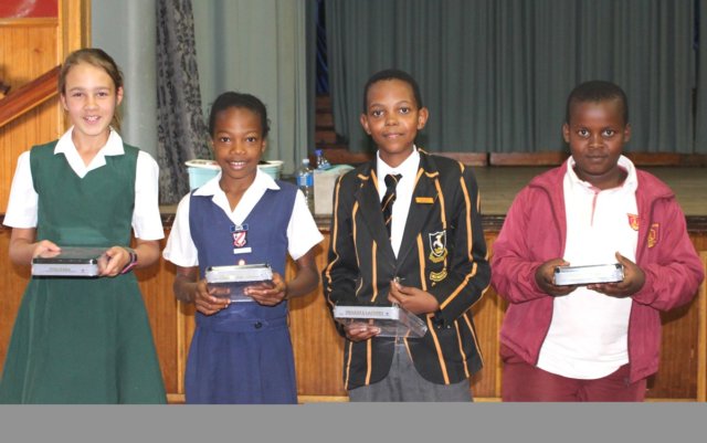 TOGETHER WE ARE STRONG: Balmoral recently hosted a Merry Maths Mix Up and invited pupils in grades 4 and 5 from Hangklip Junior, Southbourne and Queen’s Junior who were all mixed up to solve maths problems. The team of Anke Schoeman (Hangklip Junior), Sophie Okafor (Balmoral), Esihle Panda (Queen’s Junior) and Aiden Newan (Southbourne) received third place Picture: SUPPLIED