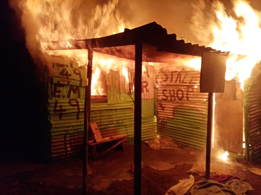 Mabungela said he stood half-naked and watched as his shack was engulfed in flames. “People tried to call fire fighters and the police but no-one arrived. Everything was inside, my ID, bank cards, money, my daughter’s books. We lost everything in the fire, but luckily no one was harmed.”