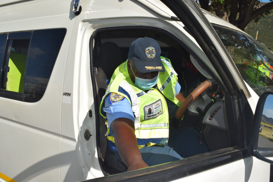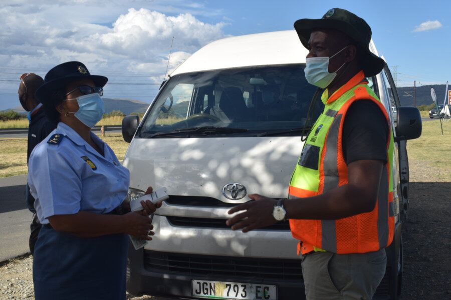 Roadblocks were set up at entry points into the town and vehicles were checked for roadworthiness and lockdown regulation compliance.