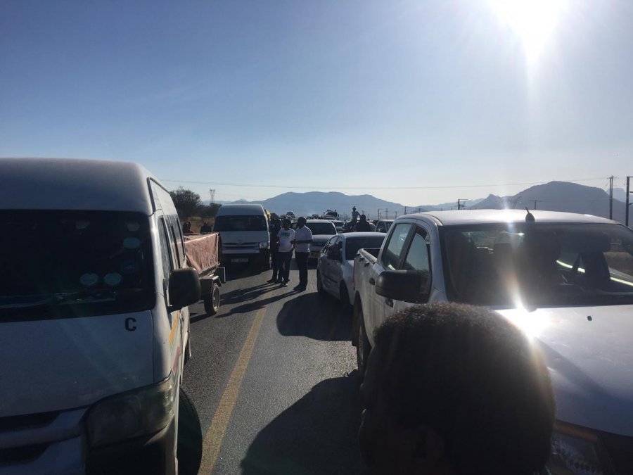 Chaotic scenes unfolded on the N6 earlier today when livid community members of Ezibeleni embarked on a protest action causing a major traffic jam which lasted for almost two hours, according to motorists.
